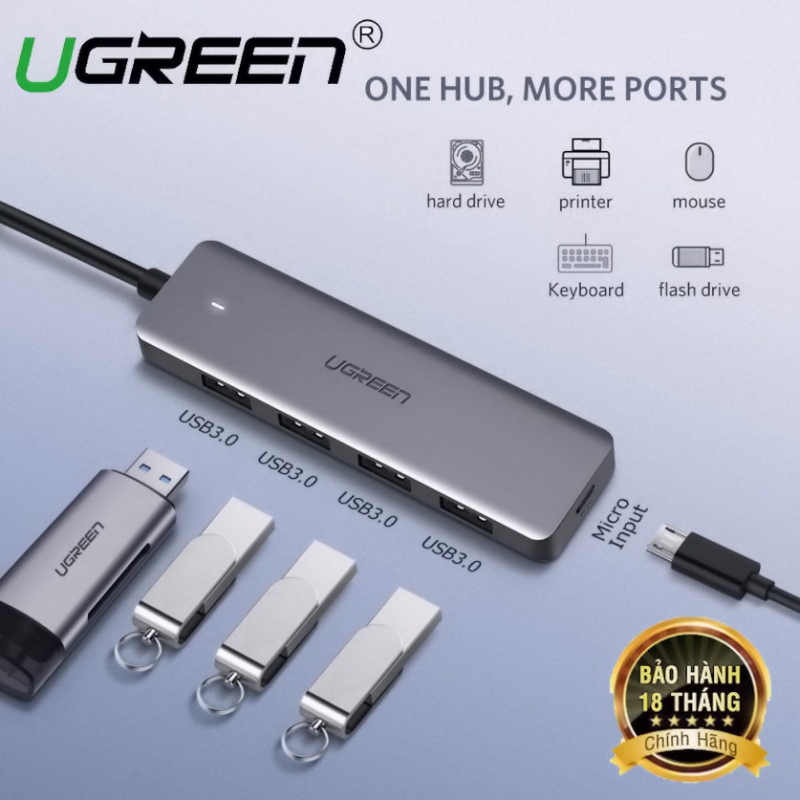 HUB CHIA 4 CỔNG USB 3.0 HỖ TRỢ CẤP NGUỒN MICRO USB CHÍNH HÃNG UGREEN 50985 CAO CẤP