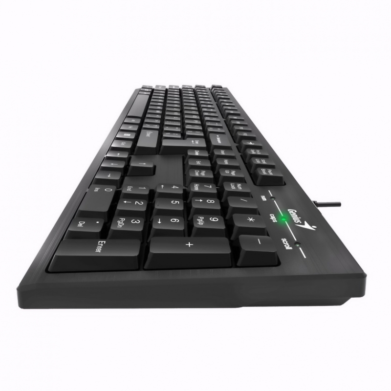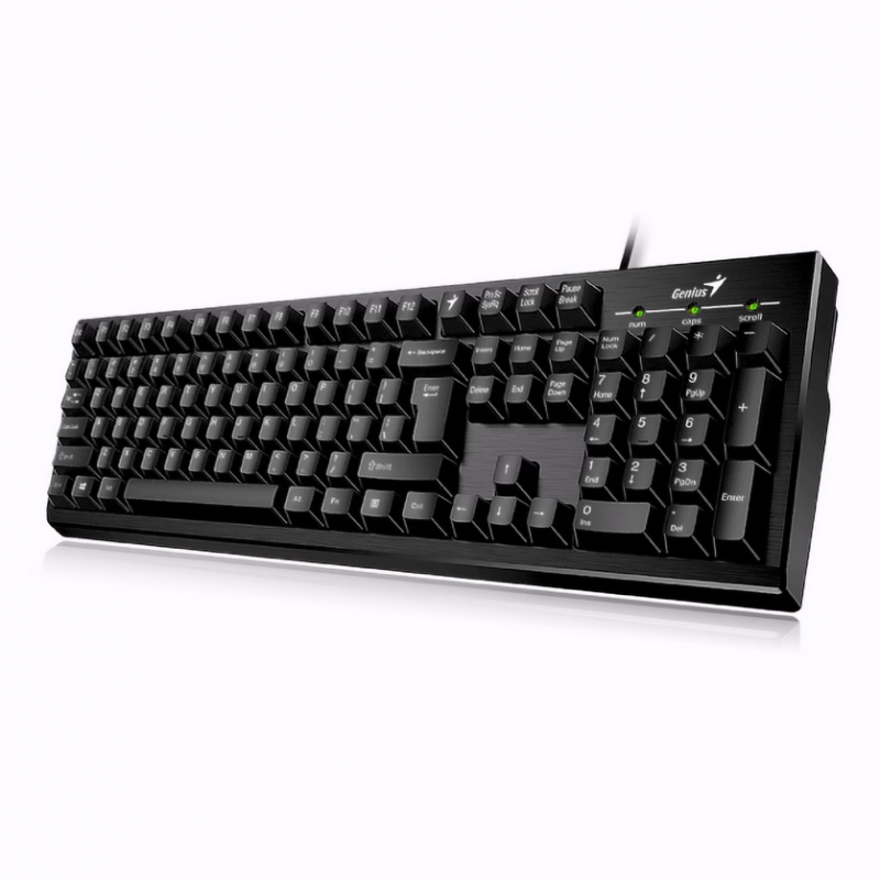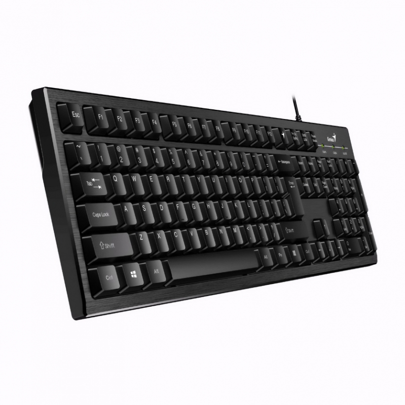 Bàn Phím Có Dây Genius KB-117 mang thiết kế fullsize lên tới 105 phím. Mặt trước của bàn phím được gia công từ chất liệu nhựa nhám đem vỏ bàn phím xước ,cảm giác sờ rất mịn ở đầu ngón tay. Các phím có độ sâu khoảng 1.6mm đạt chuẩn không bị quá nông hoặc quá cao giúp người dùng lướt nhanh khi đánh văn bản.