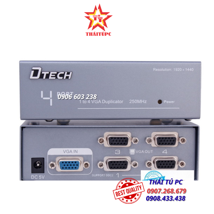 Bộ chia VGA 1 to 4 250MHz Dtech DT-7254
