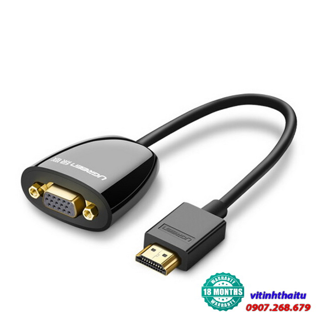 - Cáp chuyển đổi HDMI to VGA không Audio Ugreen 40253 cho phép bạn kết nối Máy tính xách tay, HD DVD, HD DV không có cổng VGA với máy chiếu, hiển thị, màn hình LCD, TV, hỗ trợ full HD 1080p.