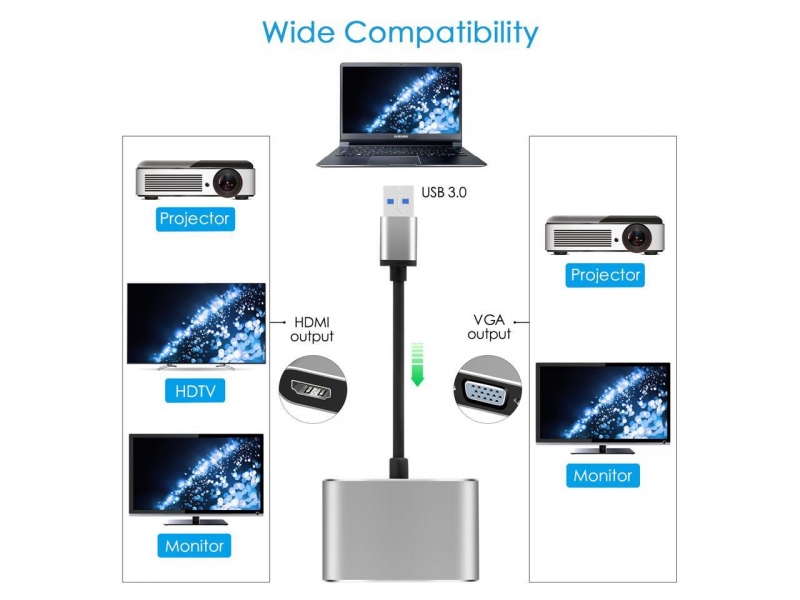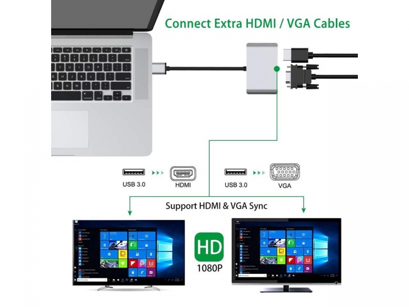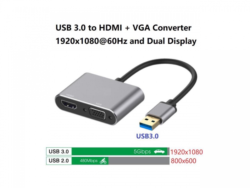 CÁP CHUYỂN ĐỔI USB 3.0 -> HDMI + VGA HT-002