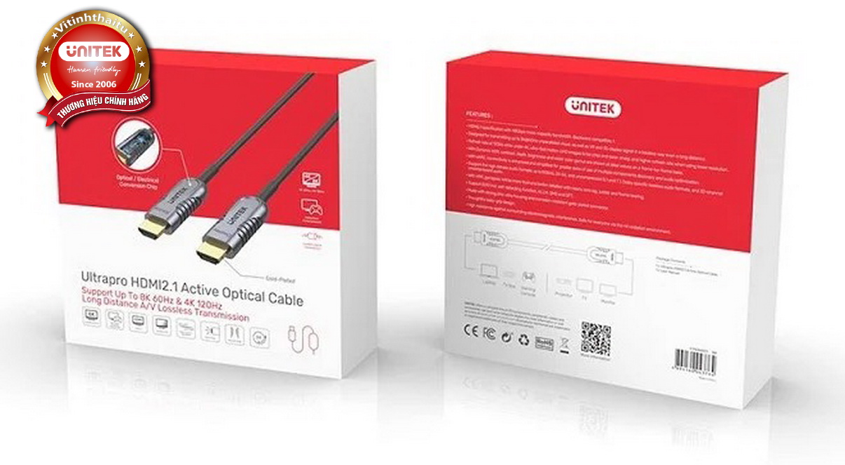 Cáp HDMI 2.1 Unitek Ultrapro 40m Active Optical C11032DGY ---- 1.720.000