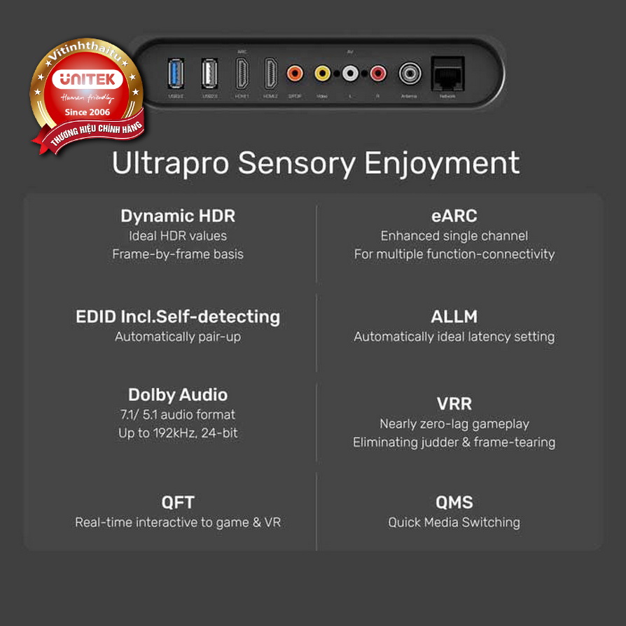 - Hỗ trợ EDID bao gồm. chức năng tự phát hiện, ALLM, QMS và QFT.