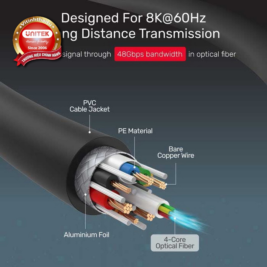 Cáp HDMI 2.1 Unitek Ultrapro 60m Active Optical C11034DGY ---- 2.160.000