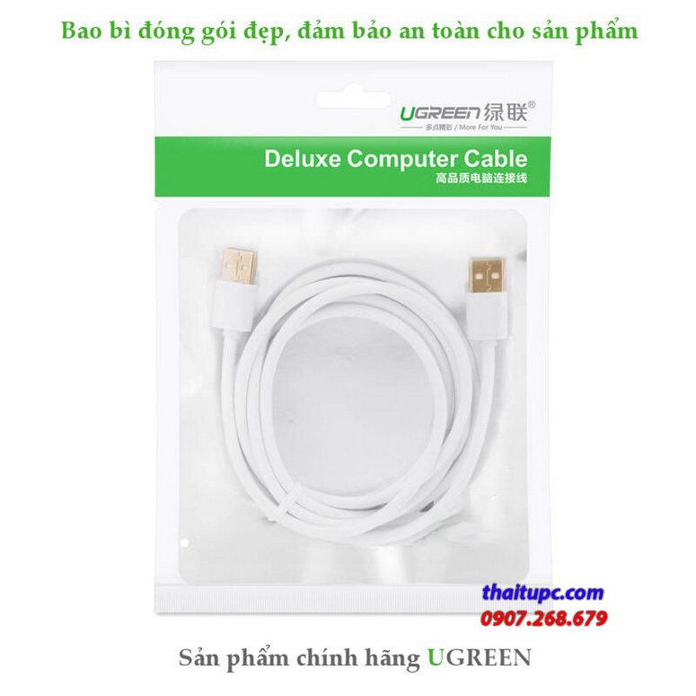 - Cable USB 2.0 Ugreen 30135 để cáp dương cho phép bạn kết nối PC với các thiết bị của bạn, như bàn phím, chuột, modem, máy in, thiết bị ngoại vi và USB khác vv Cáp hỗ trợ tốc độ truyền dữ liệu lên đến 480 Mbps.