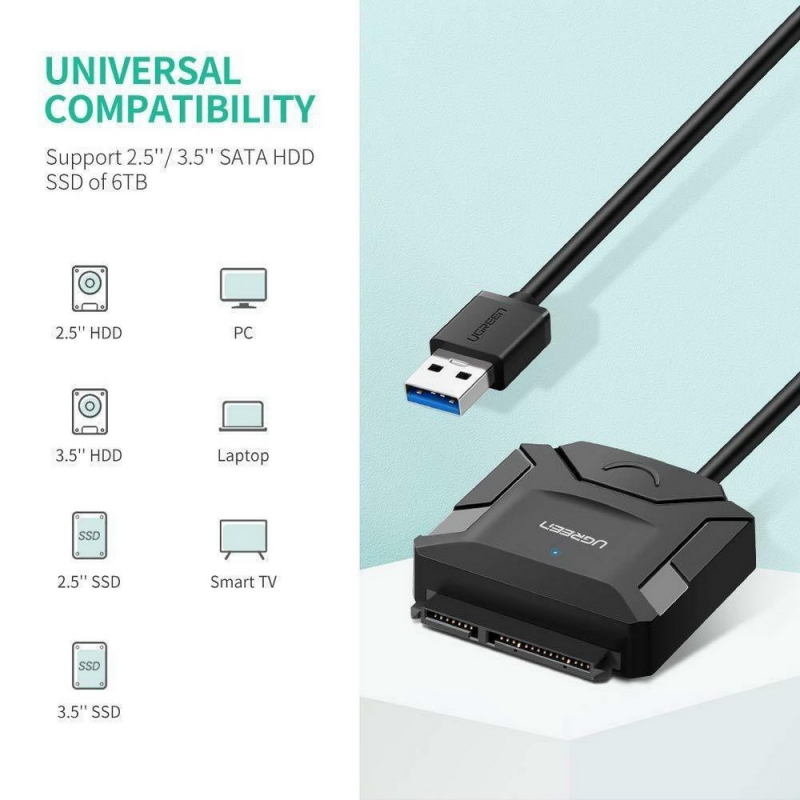 - Cáp chuyển USB 3.0 sang SATA III HDD SSD 2.5″/3.5″ là thiết bị hỗ trợ cho phép bạn kết nối máy tính, laptop, tivi với ổ cứng di động mà không cần cài đặt Driver. Hỗ trợ truy cập, kết nối sao lưu và truyền dữ liệu nhanh chóng.