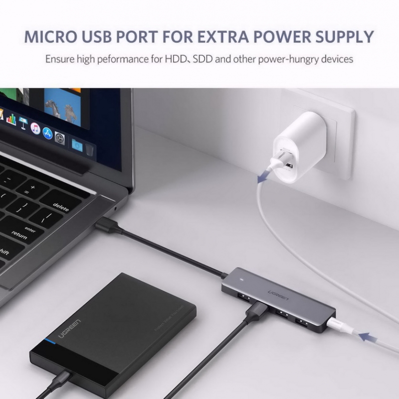 HUB CHIA 4 CỔNG USB 3.0 HỖ TRỢ CẤP NGUỒN MICRO USB CHÍNH HÃNG UGREEN 50985 CAO CẤP